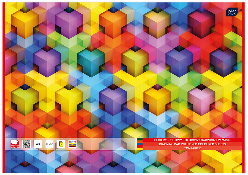 Blok rysunkowy kolor. A3 10 k. barwiony w masie, Interdruk