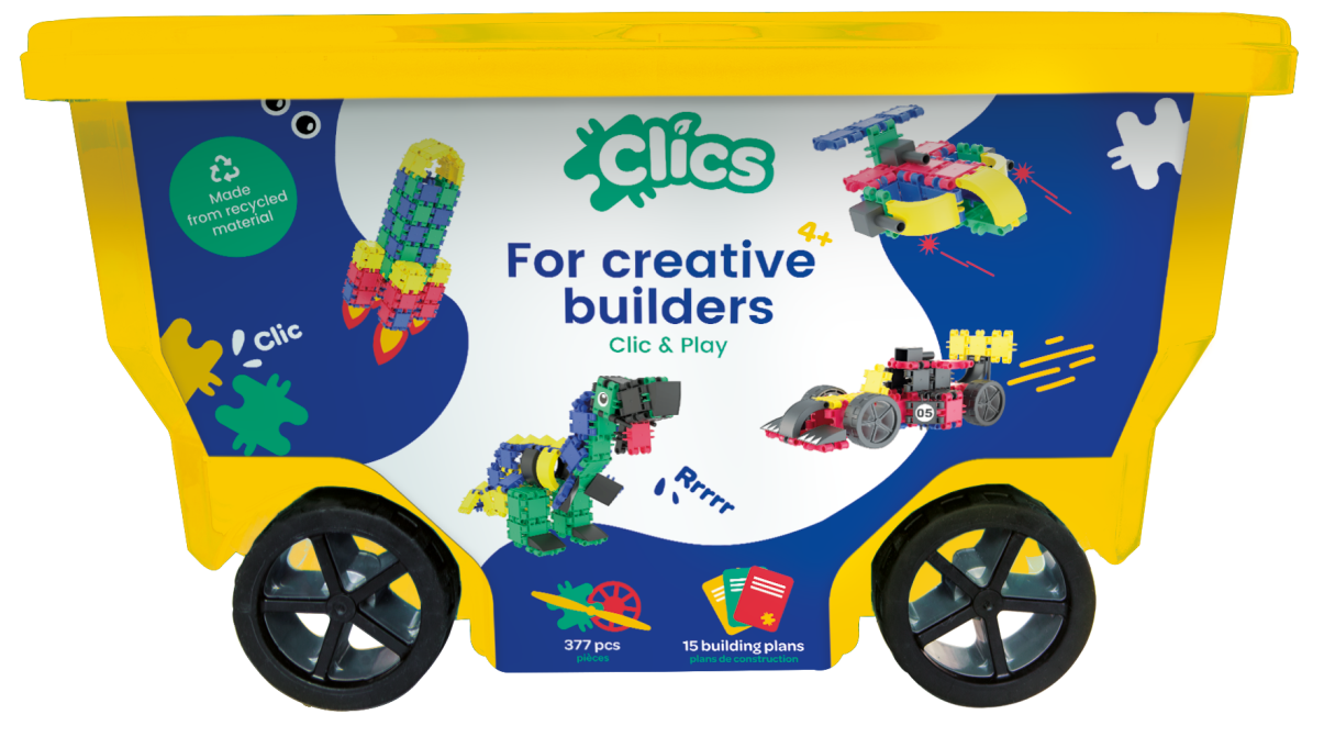 Clics to zestawy kolorowych, edukacyjnych klocków, które razem tworzą setki różnych konstrukcji ograniczonych tylko wyobraźnią budowniczego. Prosty i unikalny sposób łączenia, daje możliwość budowy zarówno płaskich jak i przestrzennych konstrukcji. Produkowane z polipropylenu, dzięki czemu są bezpieczne, wytrzymałe i zdolne do długotrwałego użycia w każdych warunkach. Klocki są bardzo popularne w placówkach przedszkolnych. Spełniają wszelkie wymogi i regulacje prawne dotyczące bezpieczeństwa zabawek w Unii Europejskiej jak i Stanach Zjednoczonych. Wyprodukowane w Belgii.