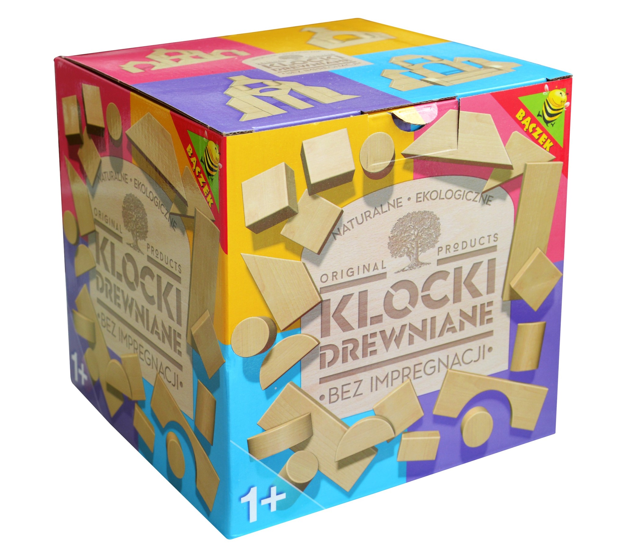 Klocki wykonane z najwyższej jakości naturalnego drewna ze specjalnym przeznaczeniem dla małych dzieci (1+). Klocki zaprojektowane są w taki sposób, aby nie zagrażały bezpieczeństwu Twojego maluszka, pozbawione są niebezpiecznych elementów a krawędzie zostały wygładzone. Zabawka rozwija zdolności manualne i uczy tworzenia pierwszych konstrukcji. Drewniane klocki dzięki różnym kształtom i wielkości wypełnią dziecku czas świetną zabawą. Zabawka doskonale łączy funkcje edukacyjne z zabawą. Klocki zapakowane są w pudełko co ułatwia ich przechowywanie.
